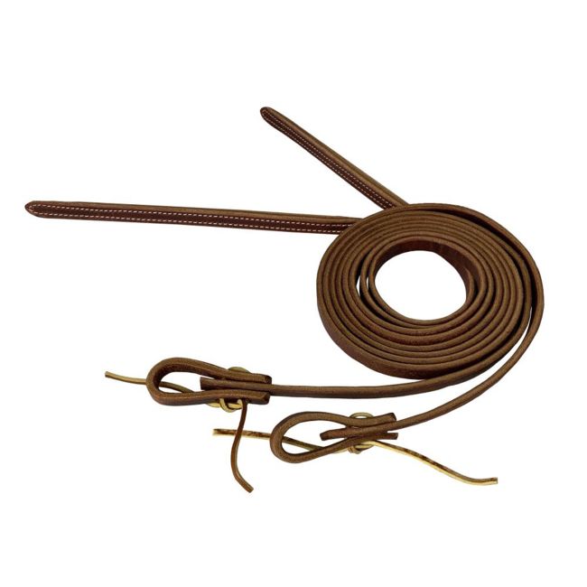 These harness leather split reins are the premier choice for the correct weight and feel in the hand. They feature waterloop ends allowing the rider to change the bit without any tools. Riding with weighted split reins gives your horse slack, helps your horse feel the weight of the reins, and amplifies rider cues because of the weighted drape of the split rein. These oiled harness leather reins will stay soft and protected for years and are perfect for riding events or everyday use!