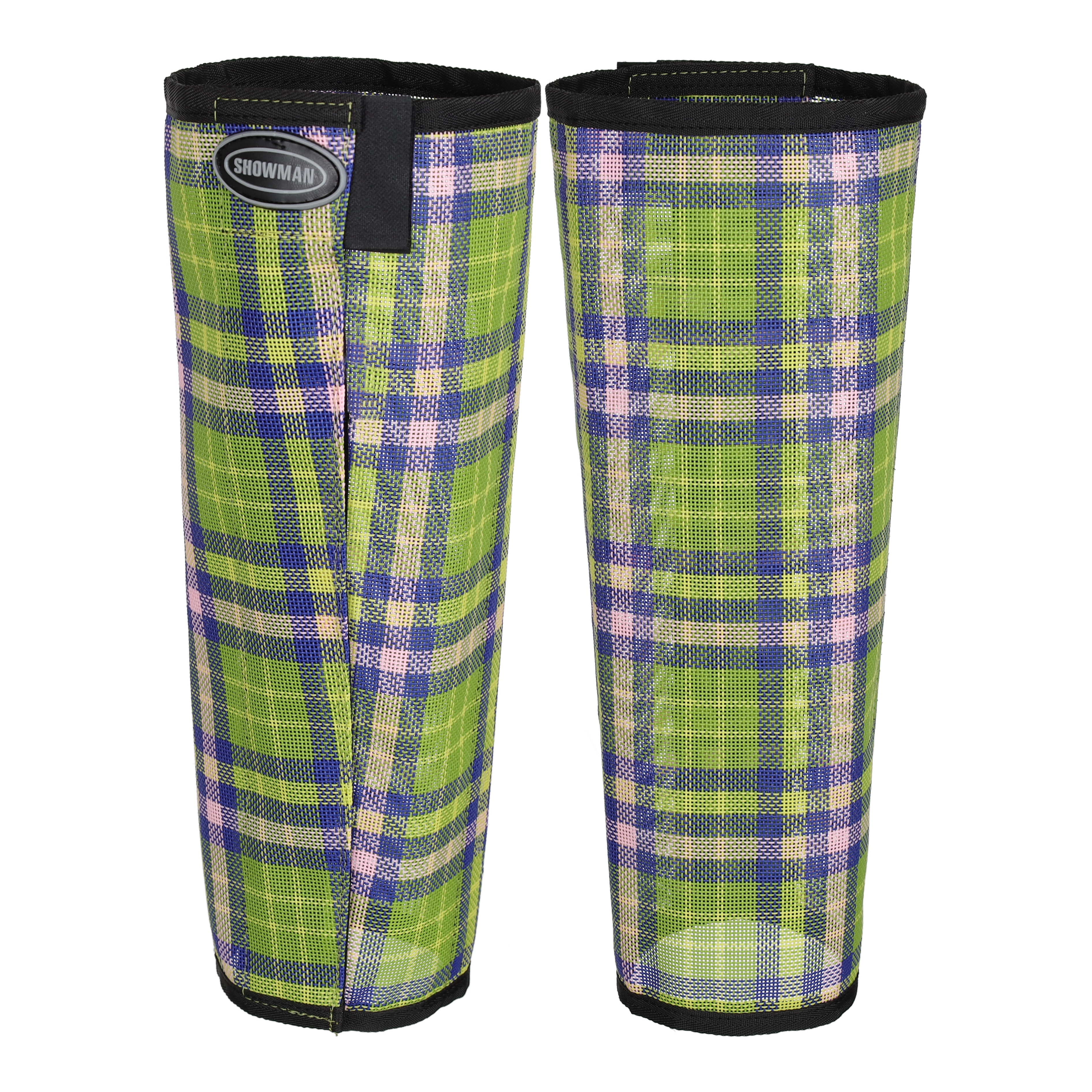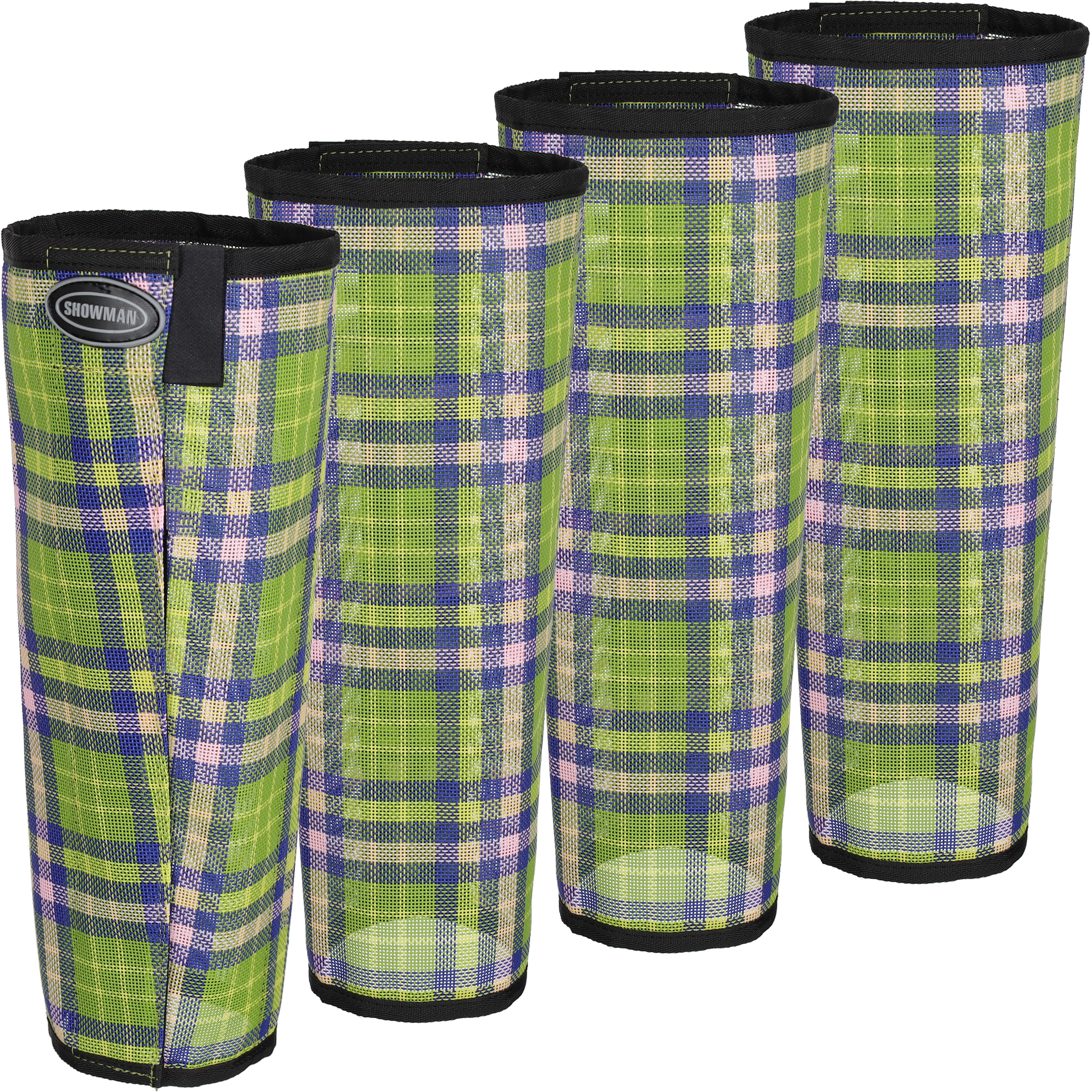 The Showman® Neon Plaid Stand Up Fly Boot (set of 4) delivers bold, eye-catching protection with a vibrant lime/neon green plaid pattern that adds fun, standout style to your horse's turnout gear. Crafted from durable, breathable mesh material, these fly boots feature the innovative "stand-up" design that stays upright and secure without sagging or slipping down the leg, ensuring consistent coverage even during active movement.