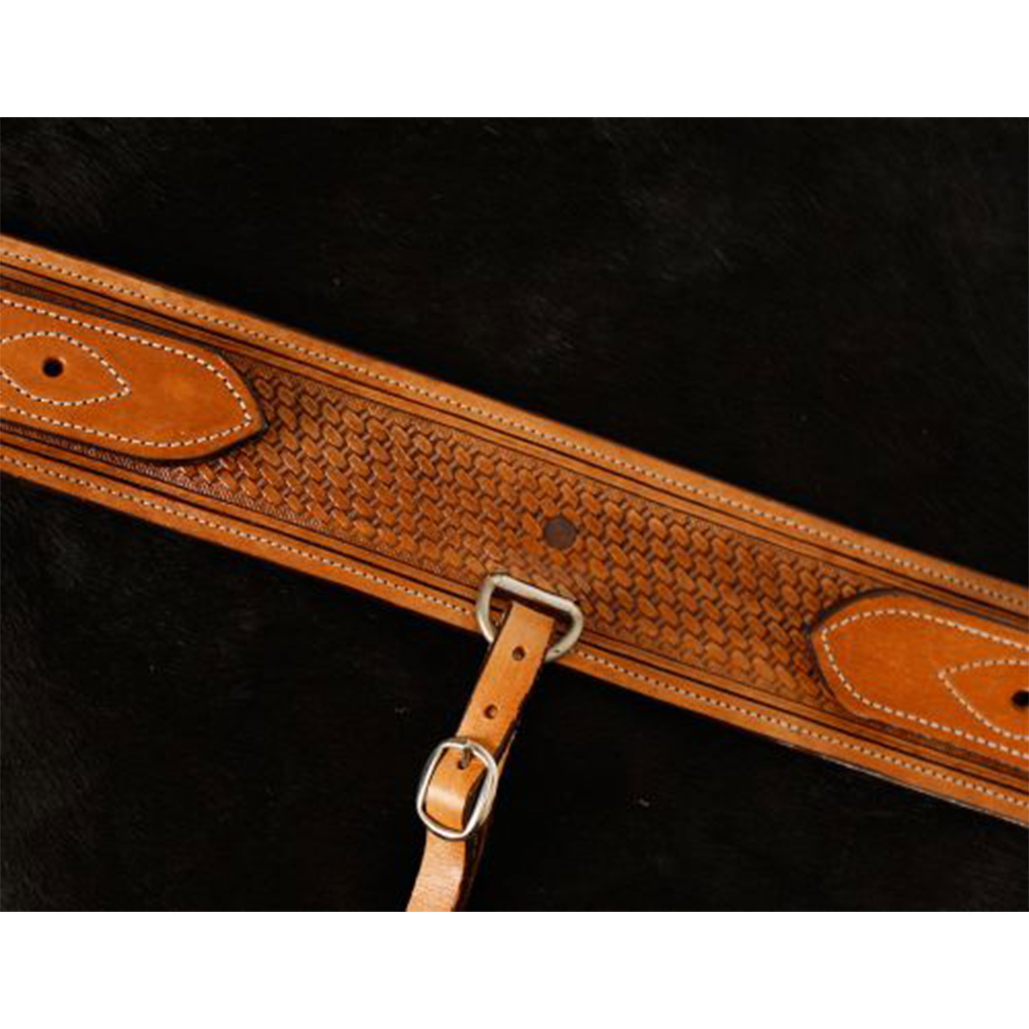 Showman ® heavy duty leather backrigging. Measures 3" wide with 1-3/4" billet straps. Comes complete with girth connector strap. Accented with basketweave tooling.