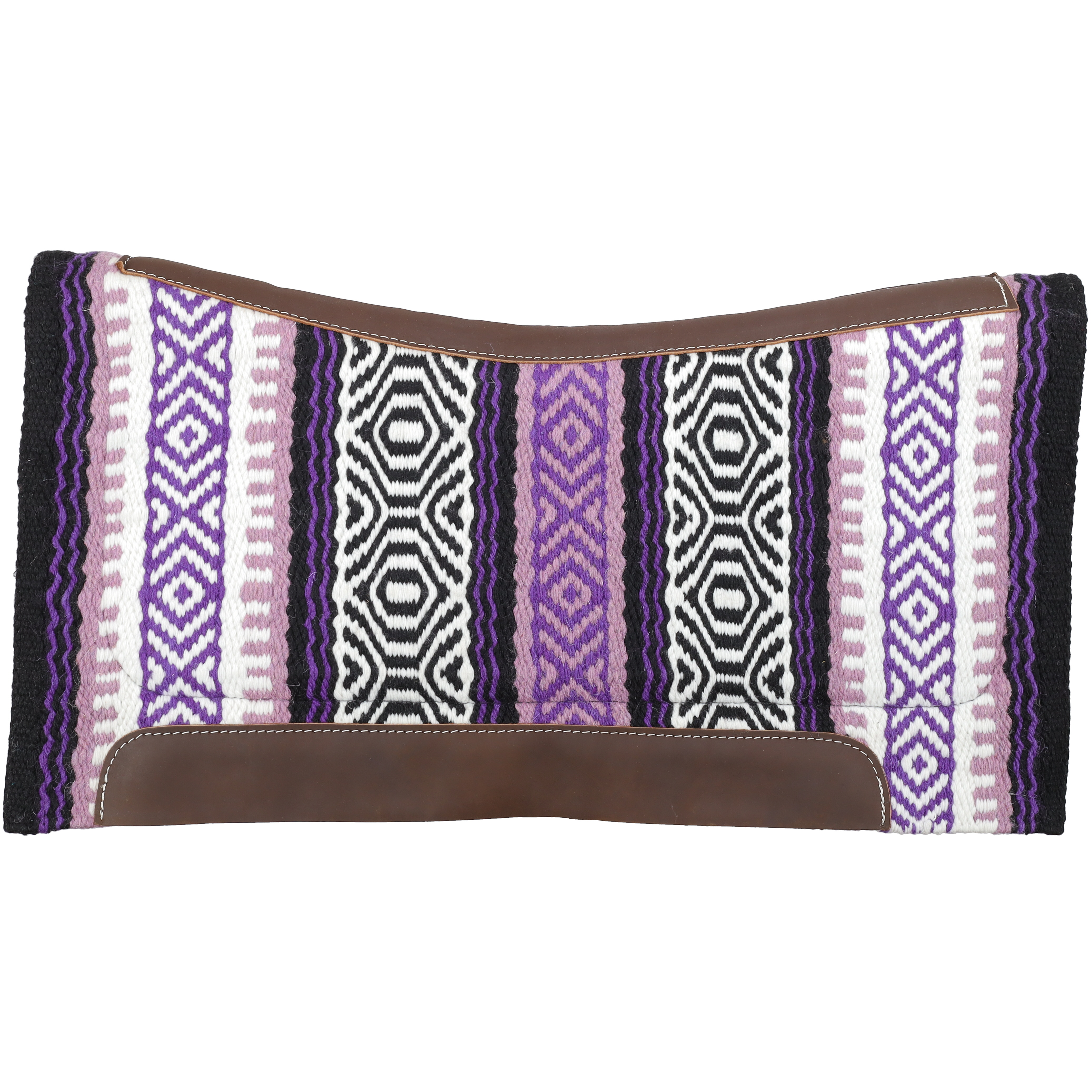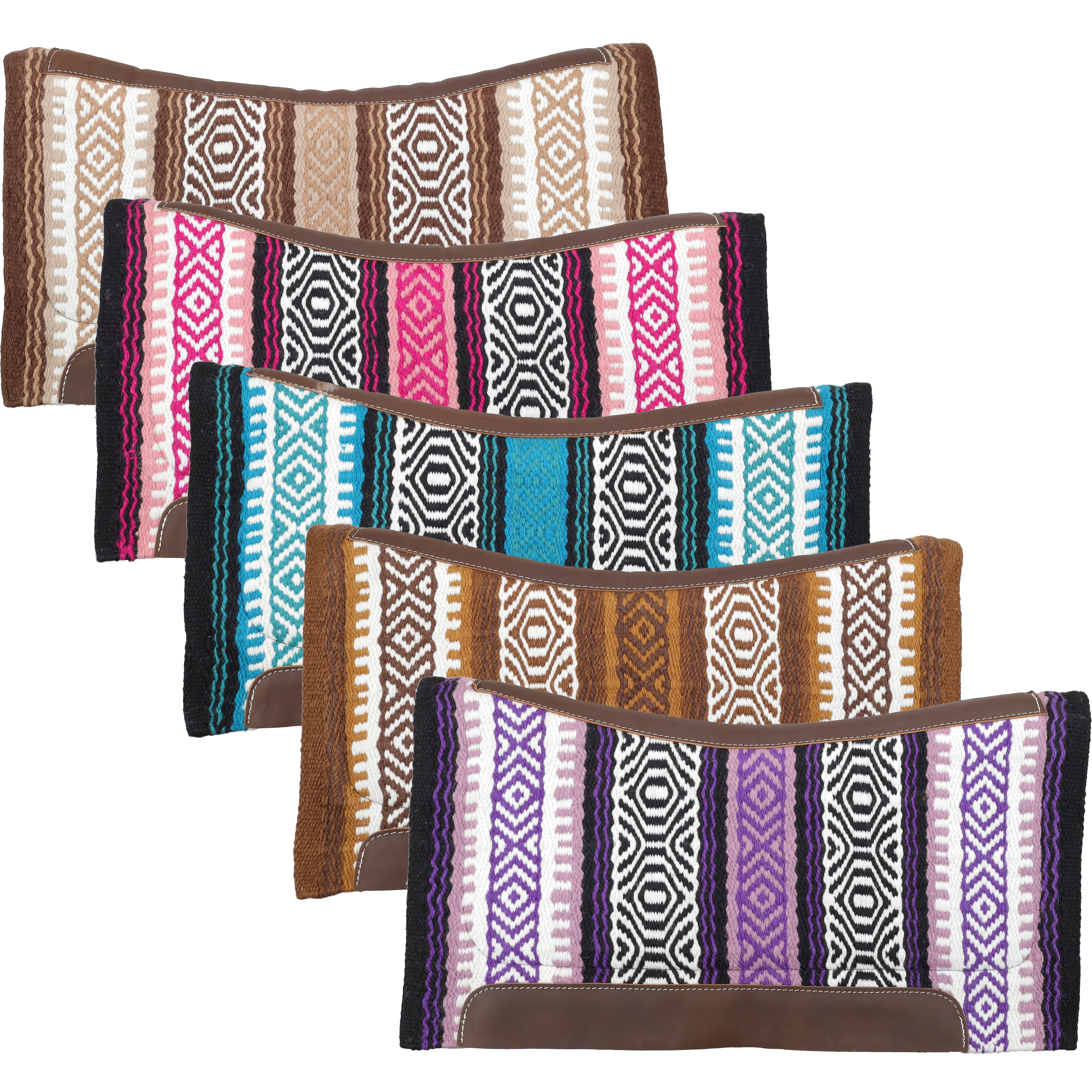 Add a touch of Southwest flair and dependable comfort to your ride with the Showman® 36" x 34" Assorted Saddle Pad with Felt Bottom – Canyon Echo. This beautifully woven wool top pad showcases assorted Navajo-inspired patterns that bring color and character to your tack setup. The premium wool top offers durability and a classic Western look, while the 36" x 34" size provides generous coverage for most saddles.