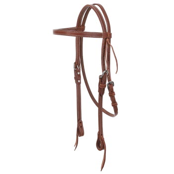Showman® 8ft Leather Split Reins. These reins feature double stitched leather that is super soft with leather tie bit loops. Reins are dark brown in color and measure 5/8" x 8'.
