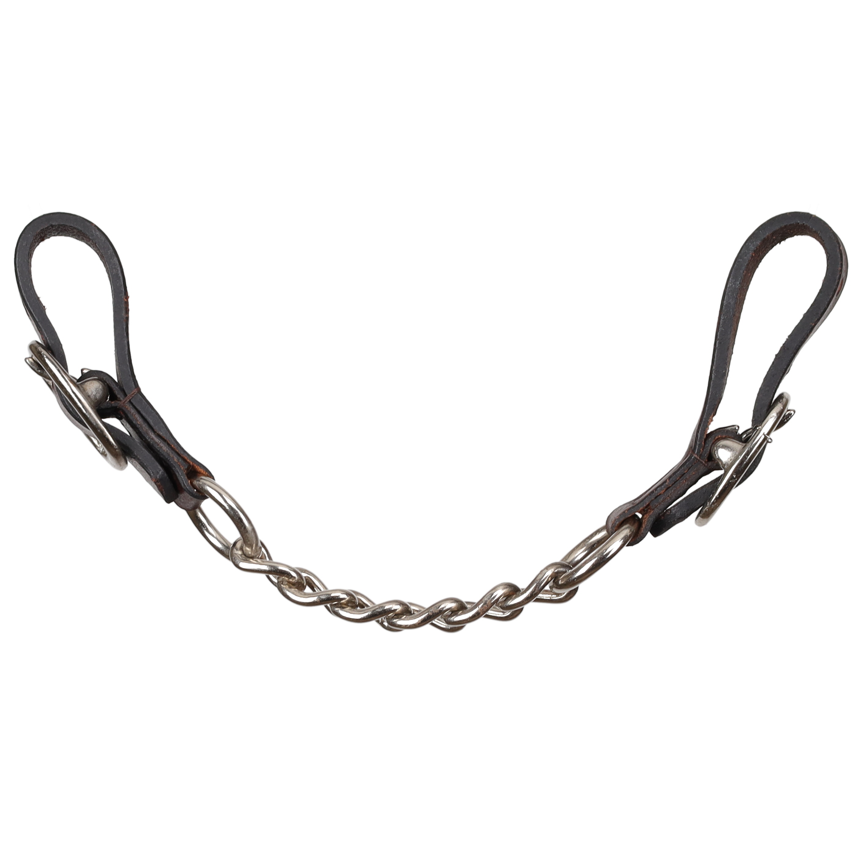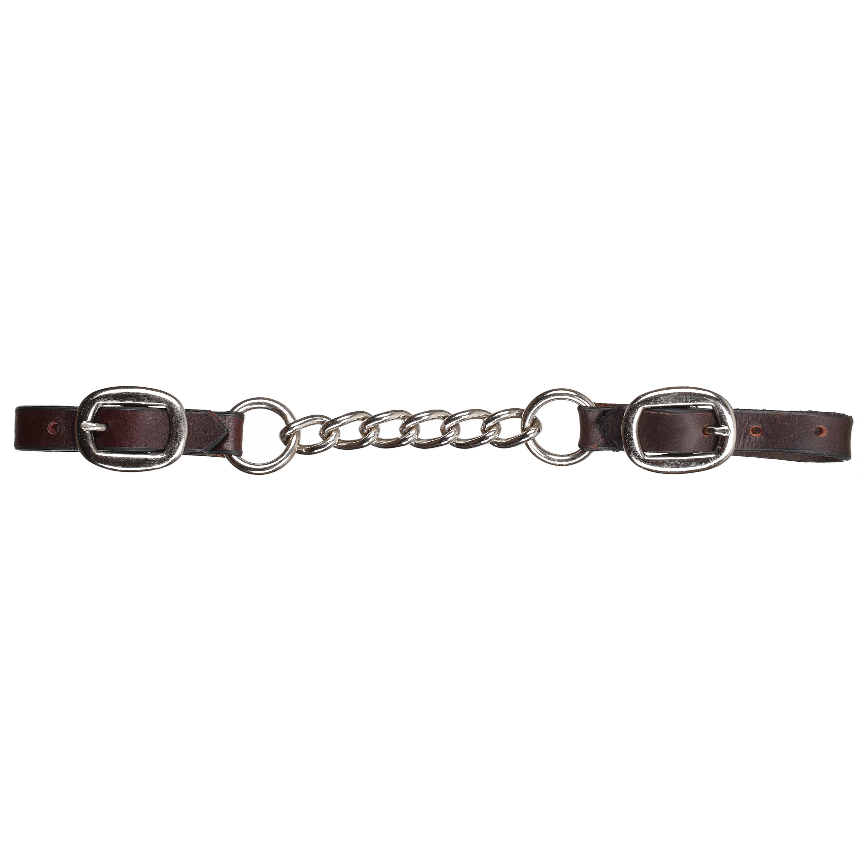 Add a reliable and stylish touch to your curb bit setup with the Showman® Argentina Cow Leather Curb Chain. Made from medium-oiled Argentina cow leather, this curb chain combines durability with classic Western appeal. The single link chain applies gentle pressure to the chin groove when used with a curb bit, helping improve communication and control.
