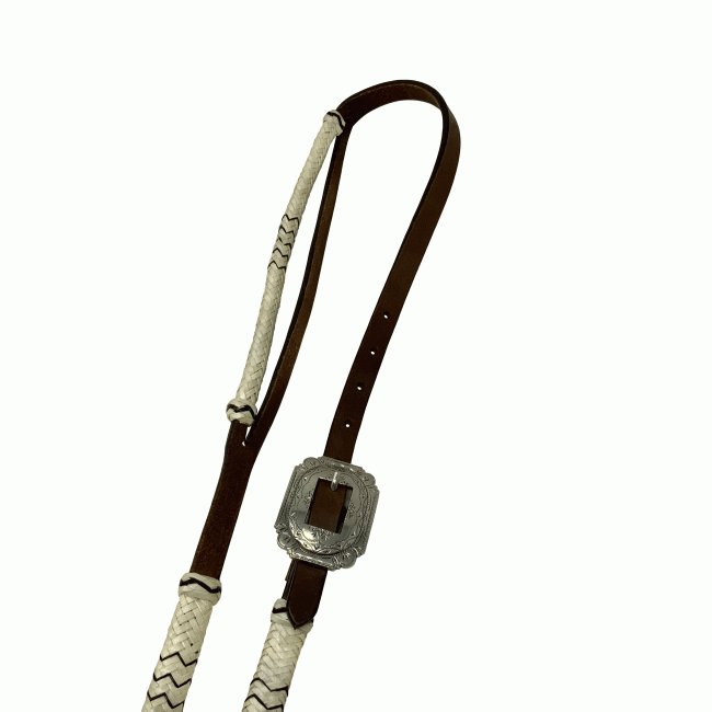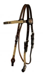 One of the most striking features of this headstall is the natural rawhide lacing adorning the cheeks and ear piece. This intricate detailing not only adds an element of traditional artistry but also reinforces the headstall’s structure, ensuring long-lasting use. The rawhide lacing complements the dark leather beautifully, creating a visually appealing contrast that highlights the craftsmanship involved in its creation. Whether you’re participating in a competition or enjoying a leisurely ride, this headstall will undoubtedly draw admiration.
