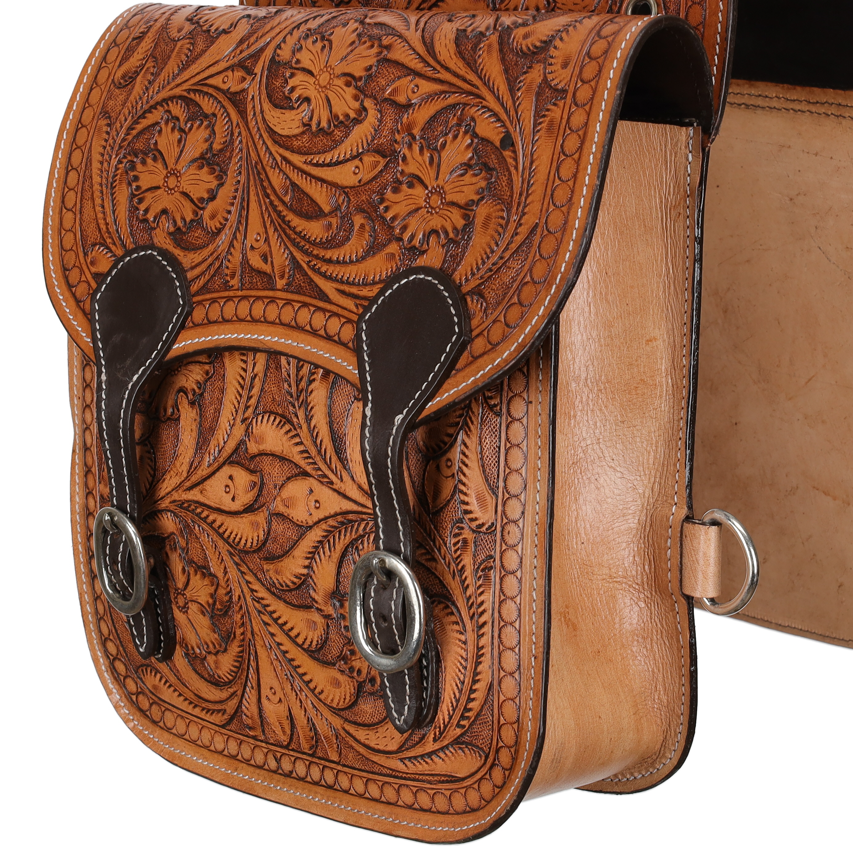 Material: Genuine leather with hand-tooled floral design
