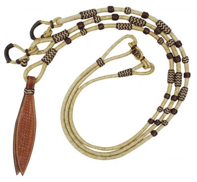 Showman ® Braided Natural Rawhide Romal Reins with Leather Popper. These reins feature supple natural rawhide with braided rawhide accents. 8' x 1/4" with 4" quirt. Made by Showman ® products
