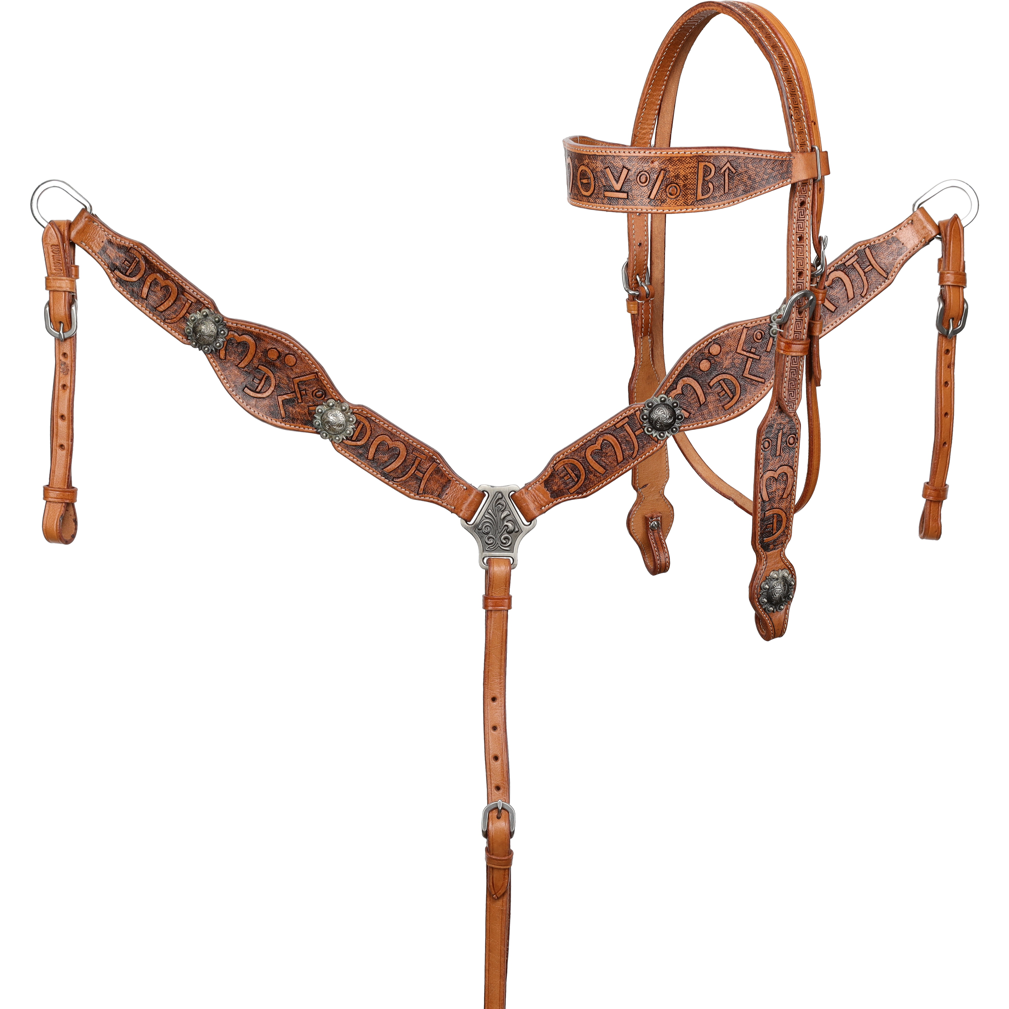 Bring authentic Western style to your tack collection with the Showman® Brandin’ Pen Browband Headstall and Breastcollar Set. Crafted from premium leather, this set features distinctive hand-tooled brand designs that celebrate the heritage of the ranching lifestyle. The natural oil finish enhances the tooling detail, while antiqued conchos and engraved hardware add a touch of rugged elegance. Built for durability and performance, this set is perfect for everyday riding, ranch work, or making a statement in the arena.
