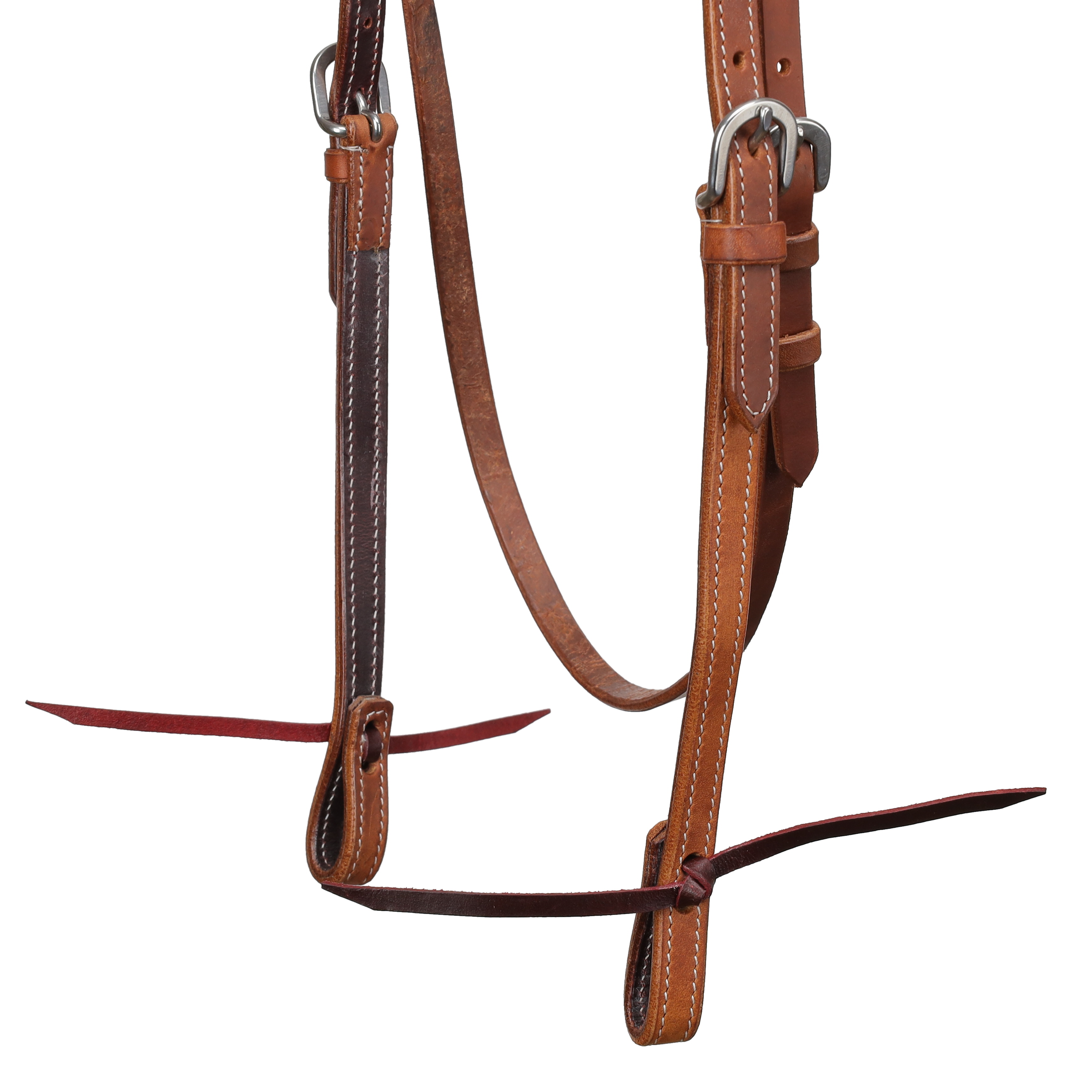 Equipped with bit ends featuring traditional leather ties, this headstall ensures a secure connection and authentic western style. Adjustable cheeks and throatlatch allow for a customized fit, making it a reliable choice for daily riding, training, or ranch work.