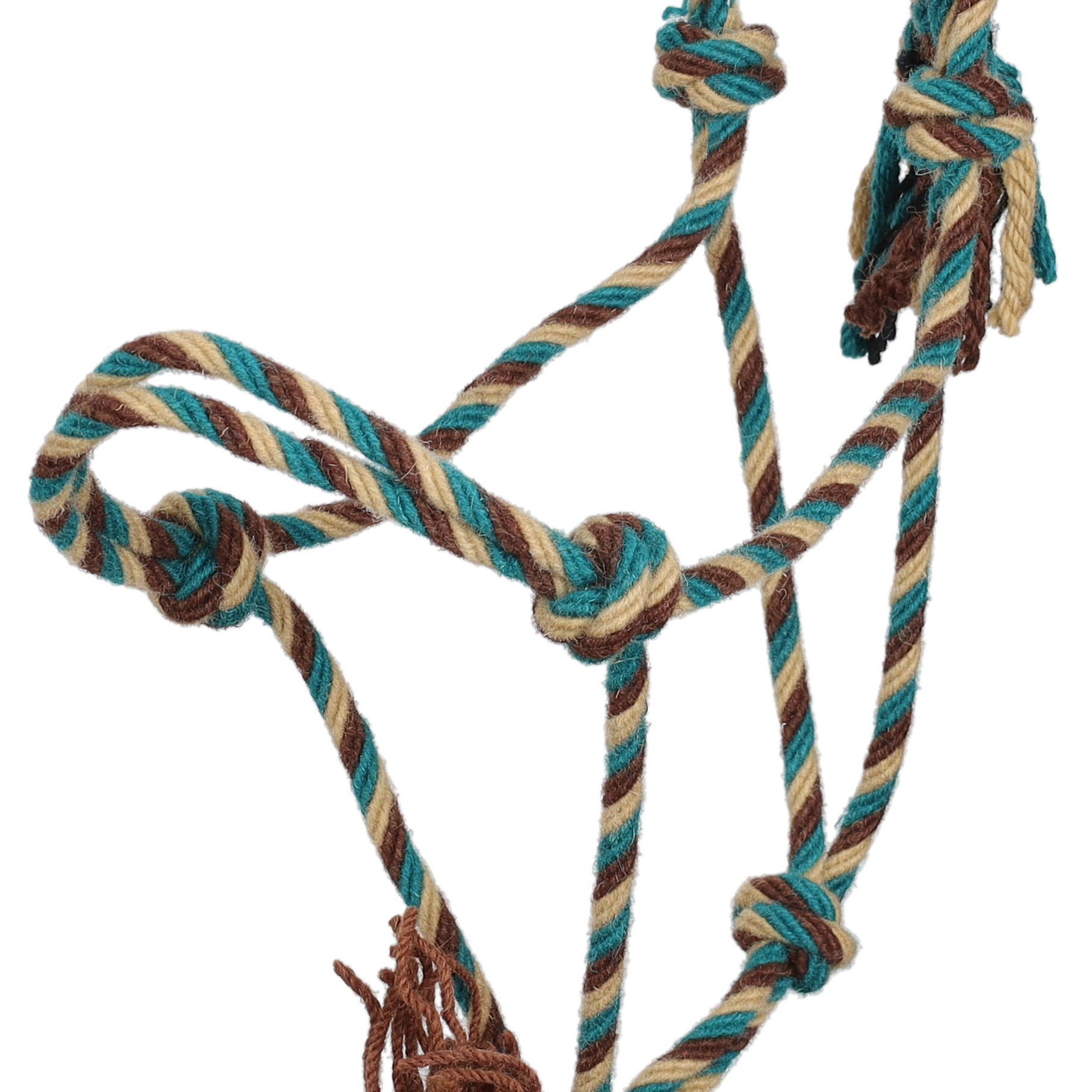 The Showman® Dust & Denim Mohair Cowboy Knot Halter with Lead brings a relaxed, trail-worn western vibe with its dusty denim-inspired palette of teal-blue, warm tan-brown, and subtle cream tones. Handcrafted from soft, durable mohair rope, it offers gentle comfort against your horse’s face while delivering the strength needed for everyday barn work, groundwork, or ranch handling. The classic cowboy knot design creates a secure, adjustable fit that naturally releases pressure during use, promoting clear communication and reducing discomfort.