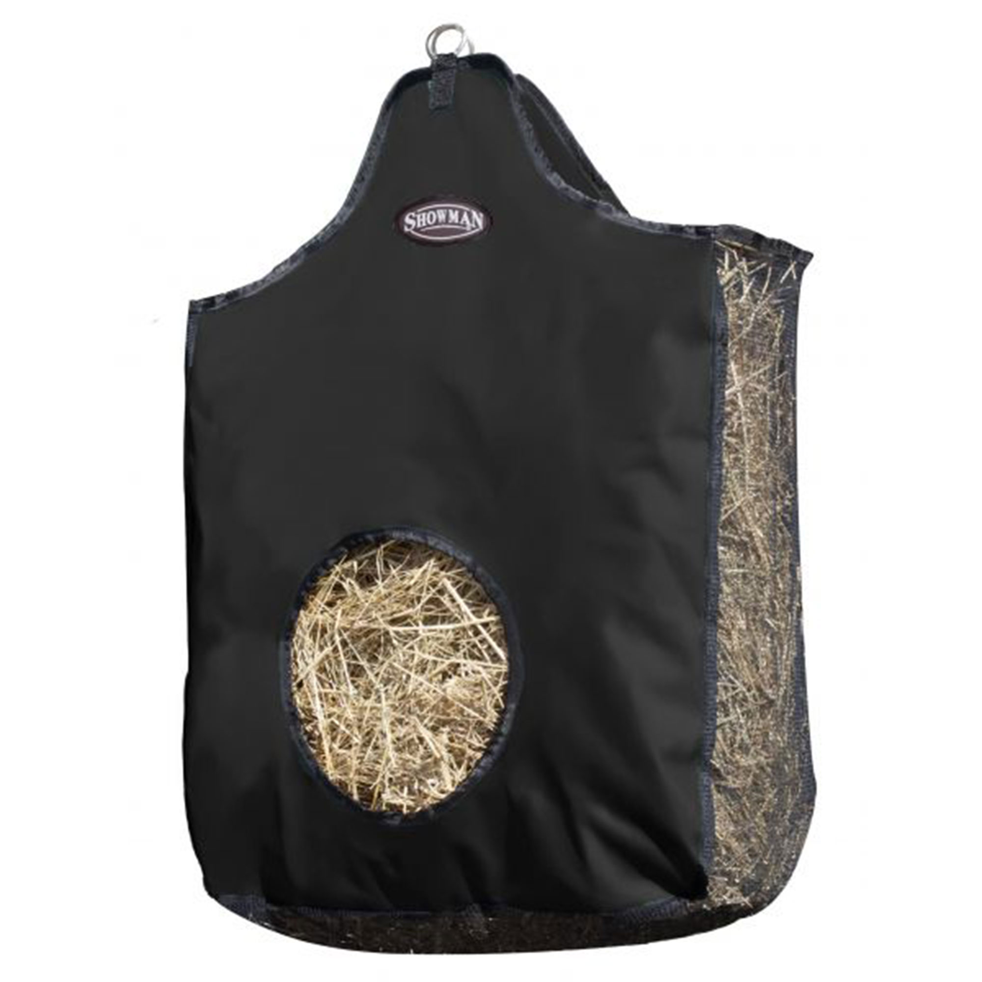The Showman® Heavy Denier Nylon Hay Bag with Mesh Sides is built for convenience, durability, and clean feeding whether you're at the barn or on the road. Crafted from heavy denier nylon with mesh sides and bottom, this hay bag provides excellent airflow while helping reduce dust buildup. The large open center circle on the front offers easy access to hay, making it simple for your horse to eat comfortably.