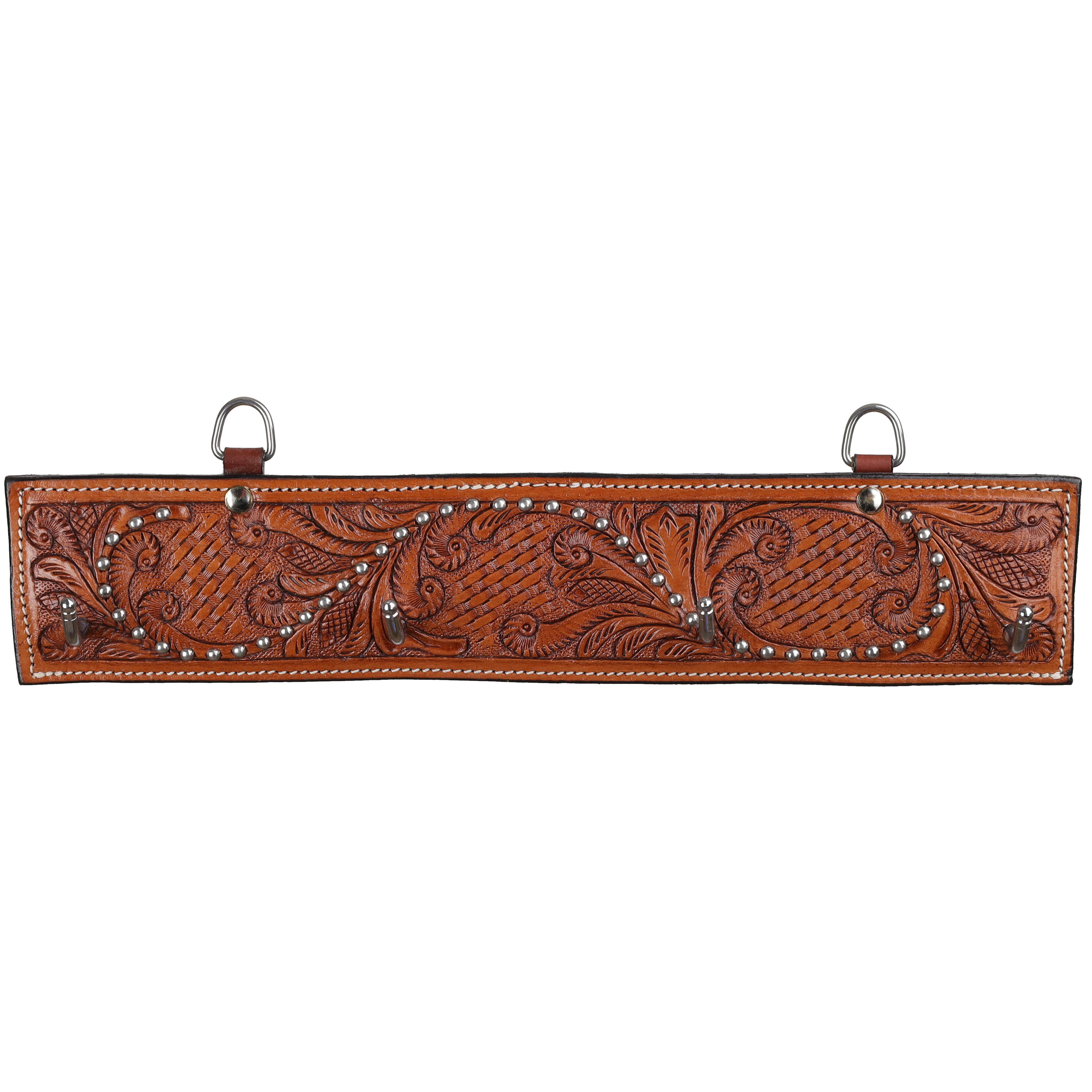 Add Western charm and practicality to your space with the Showman® Leaf Tooled Leather Wall Hook Rack.