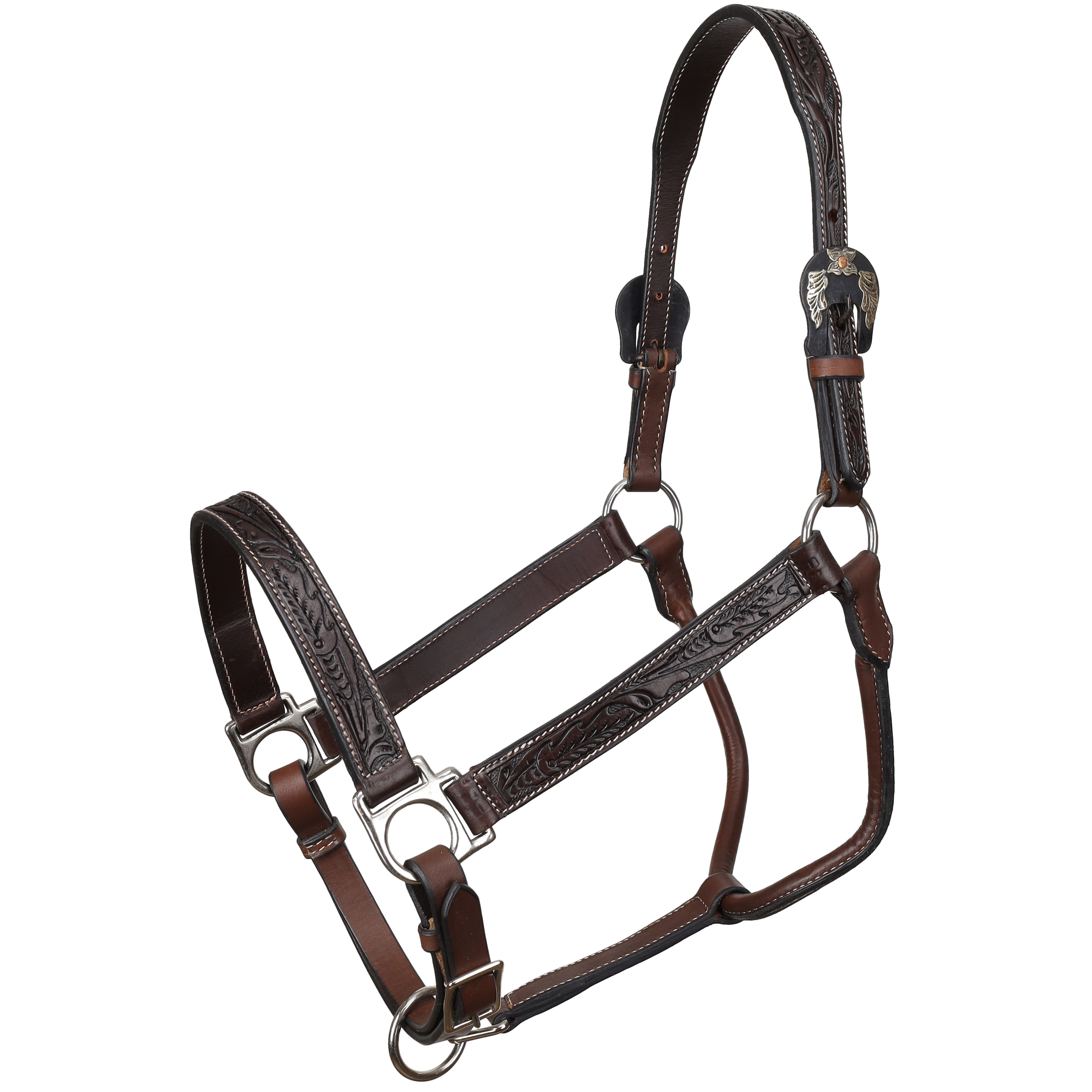 The Showman® Midnight Oak Argentina Cow Leather Halter blends elegance with quality craftsmanship, making it a standout choice for shows, photoshoots, or special occasions. Constructed from dark chocolate Argentina cow leather, this halter is beautifully detailed with leaf tooling across the nose, cheeks, and poll for a refined western look.
