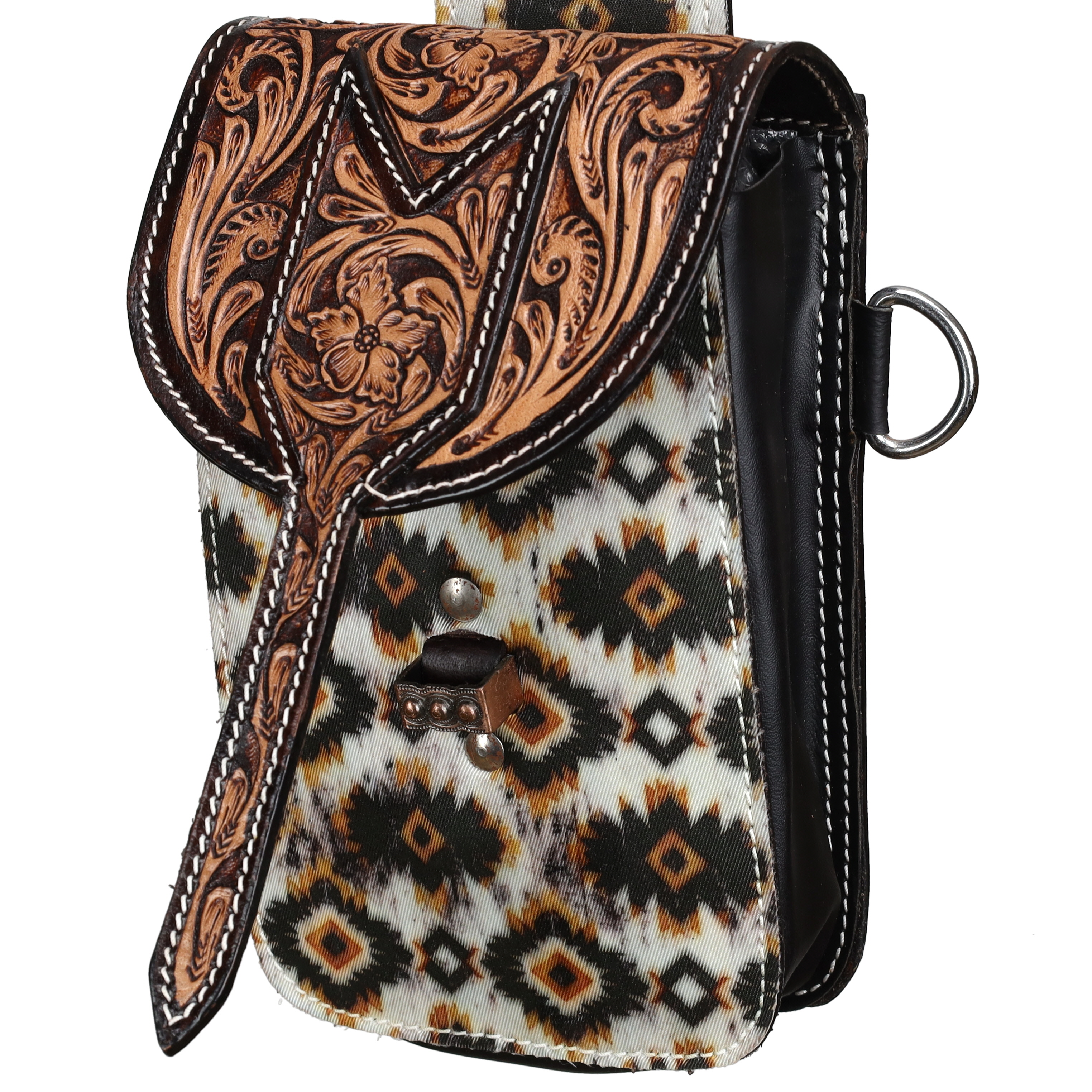 Add eye-catching desert style to your everyday rides with this Showman® Single Pommel Saddle Bag. The vibrant Aztec sunstone printed nylon overlay body offers lightweight durability while the hand-tooled floral leather flap adds a premium Western touch. Designed to sit securely over the saddle horn, this compact bag keeps essentials close at hand without adding bulk.