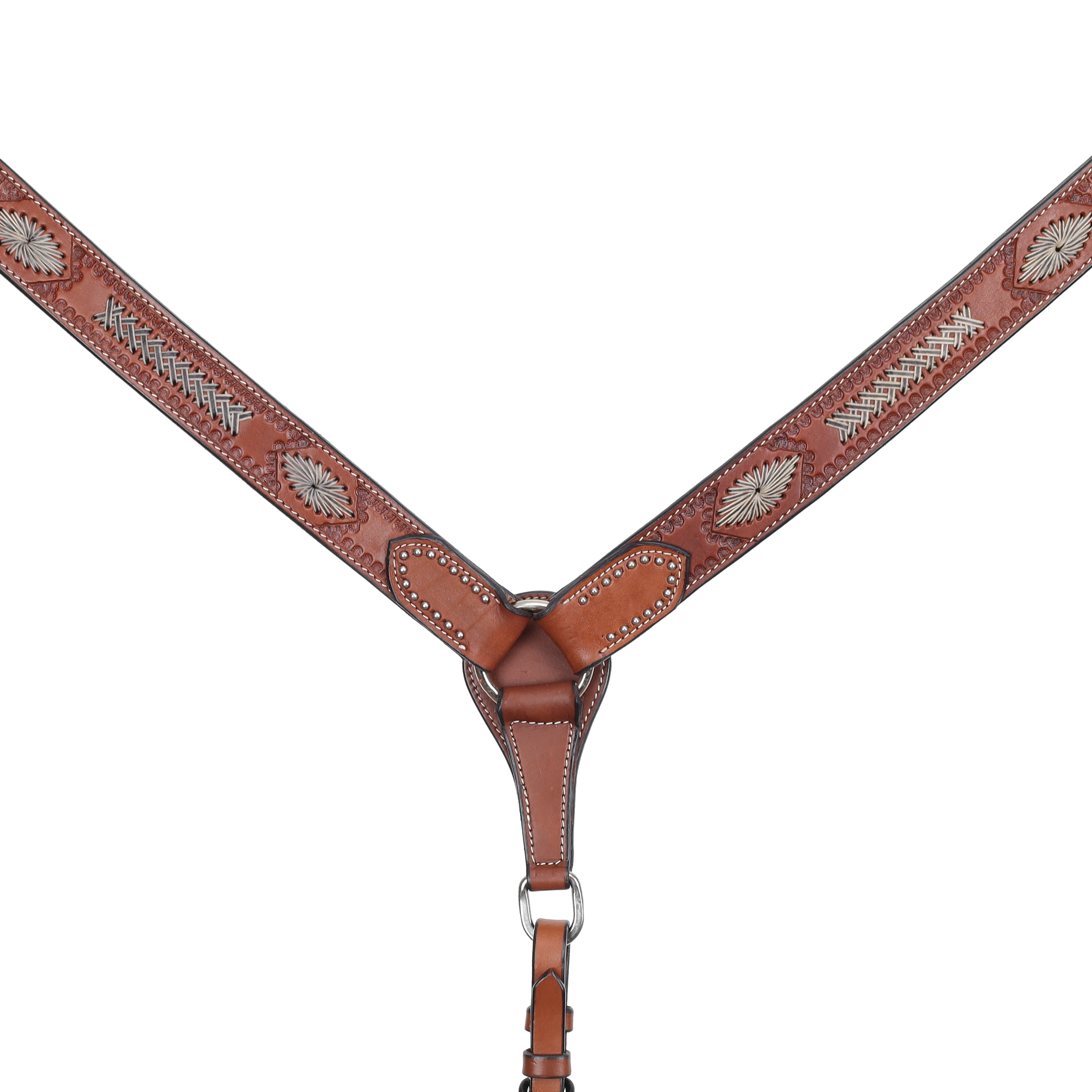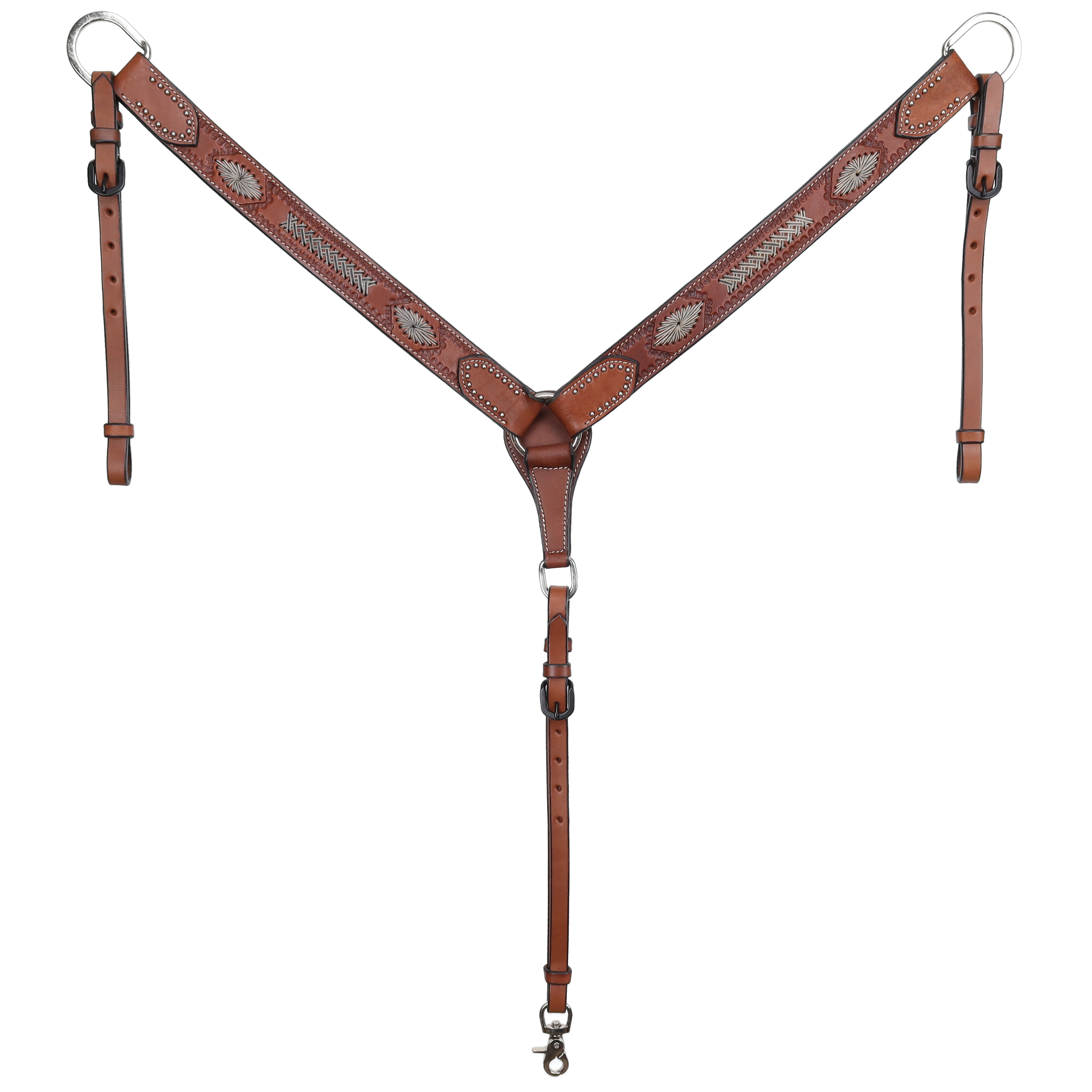 Hit the trails in style with the Showman® Trail Weave Argentina Cow Leather Breastcollar—a perfect blend of durability, western charm, and functional design.