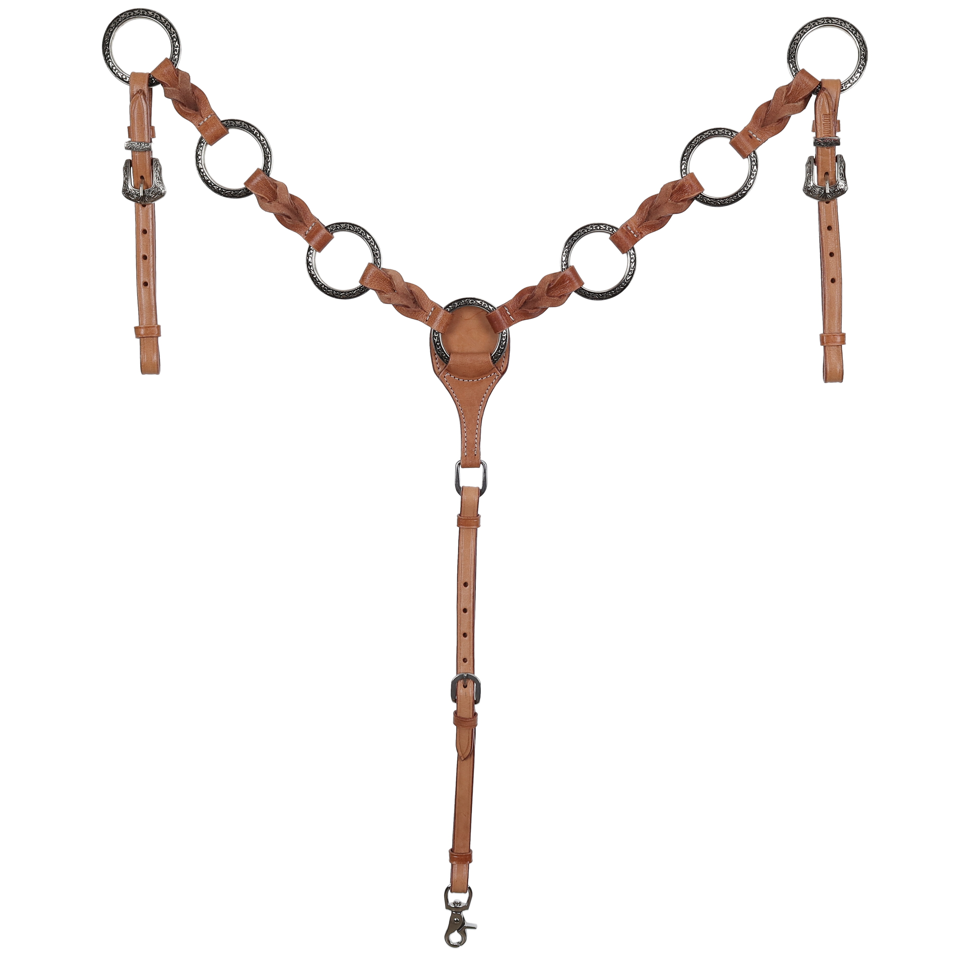 The Showman® Twisted Ring Set delivers a timeless western look with subtle, eye-catching detail. Crafted from medium oiled leather, this set features a twist leather design that adds texture and character without overpowering its classic appeal. Engraved rings on the cheeks and breastcollar complete the coordinated, traditional style.