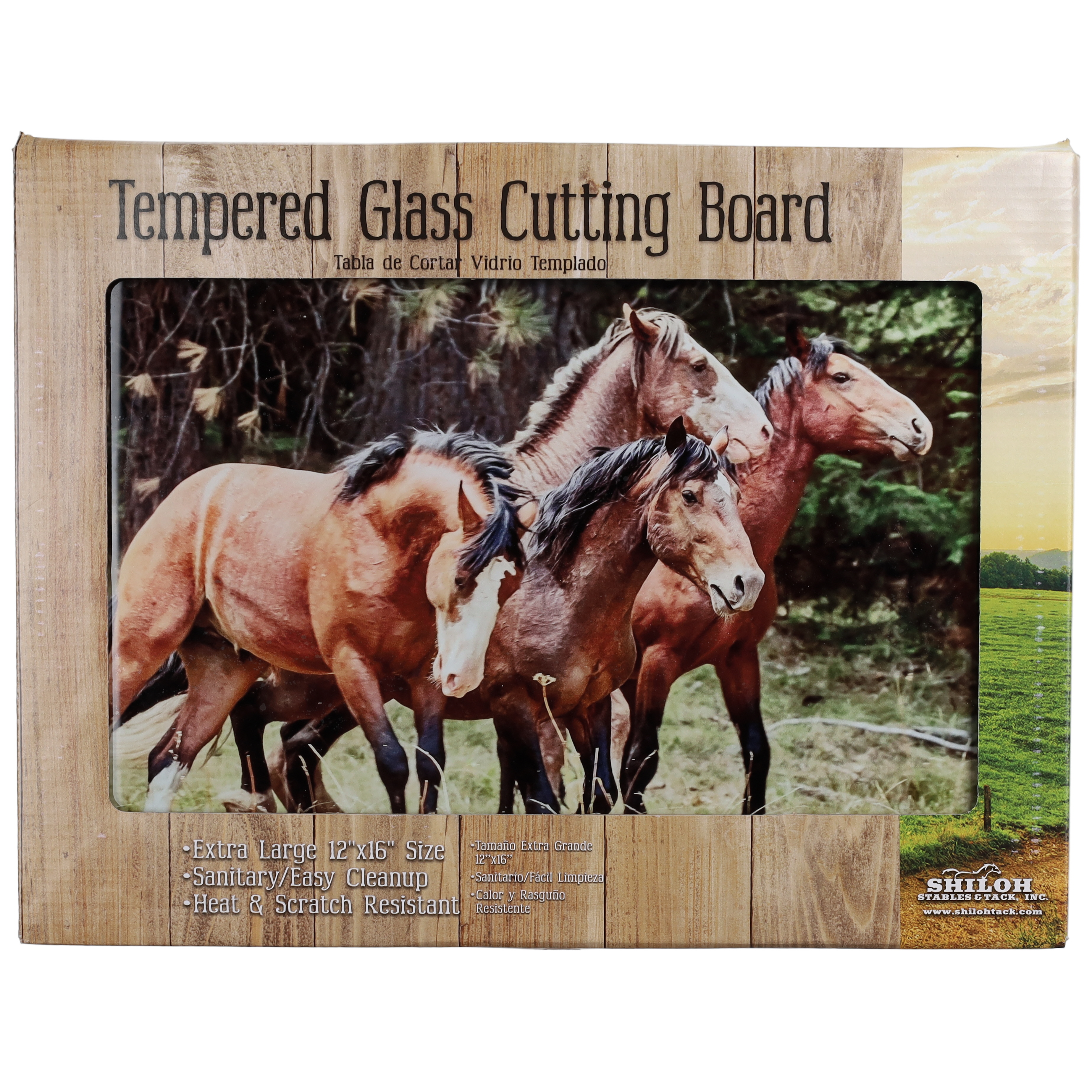 Bring a touch of untamed western beauty into your kitchen with the Timber Run Tempered Glass Cutting Board. Featuring a striking image of horses moving powerfully through a wooded landscape, this cutting board captures the strength, motion, and freedom of the wild while delivering everyday kitchen performance.
