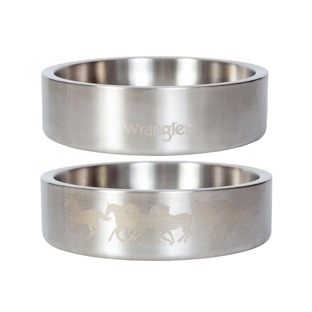 Give your four-legged friend a touch of classic Western style with the Wrangler Double Walled Stainless Steel Dog Bowl. This premium bowl proudly displays the iconic Wrangler logo and features a beautiful etched horse design that adds elegance and personality to mealtime. Whether you have a big dog with a large snout or a tiny pup (and yes — it even works great for cats!), this versatile bowl is designed to suit all sizes while keeping food and water neatly contained.