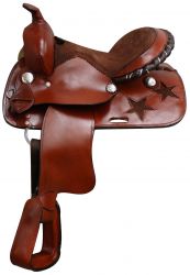 12" Pony saddle with silver laced cantle. Saddle features cut out star on skirt with silver conchos